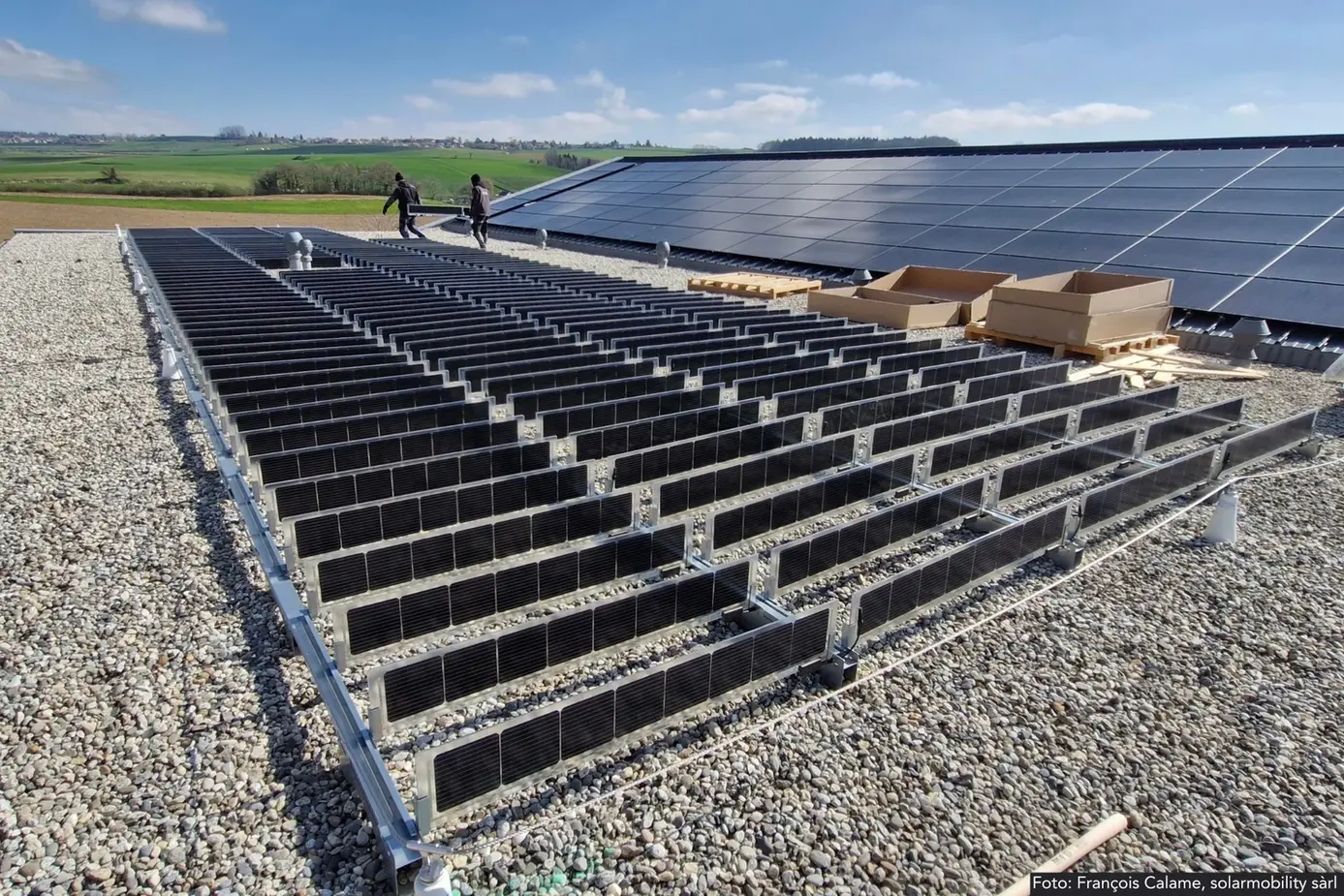 In March 2025, our partner PlanPRO brought our first project in Romandy to life, in collaboration with Solarmobility sàrl. On a flat roof in Vufflens-la-Ville (VD), a total of 84 vertical module units were installed across 200 m².