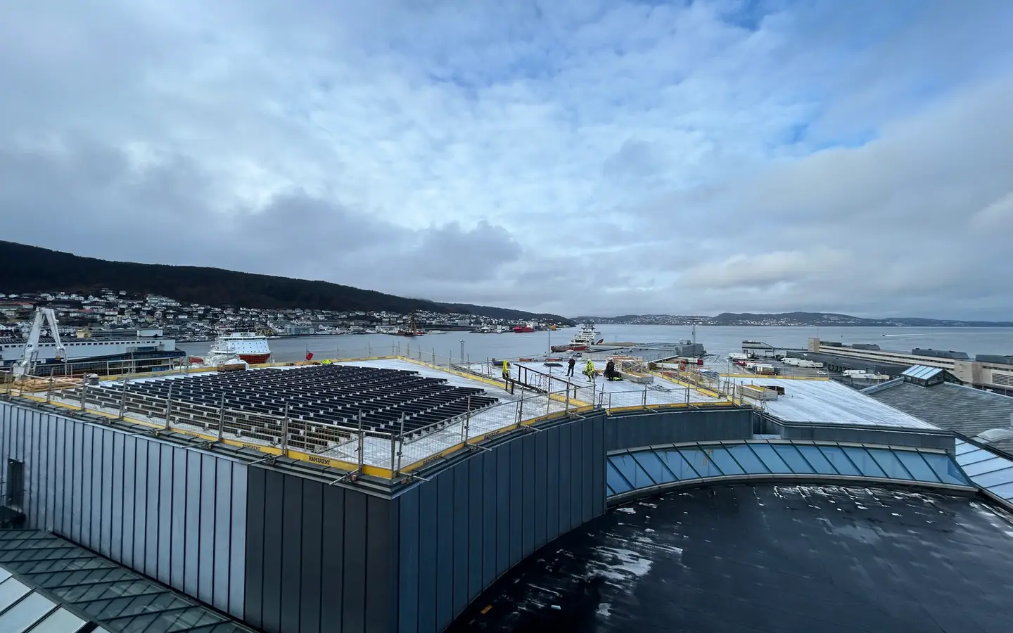 This project in Bergen, located on Norway’s west coast, showcases the exceptional wind resistance of our VPV units. Positioned near the ocean on a high-rise building, the site is highly exposed to strong winds. Thanks to the absence of lift forces, Over Easy Solar successfully installed 164 units without the need for ballast or intrusive fastenings. In contrast, conventional panels would have required substantial ballast, placing considerable strain on the roof. Additionally, the bright reflective surfaces at the site enhance power production from the vertical bifacial units, making this installation both efficient and sustainable.